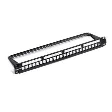 A 24-port FTP patch panel with a foldable cable manager for efficient network organization and shielding against interference. Provides structured cable management with easy access and maintenance.