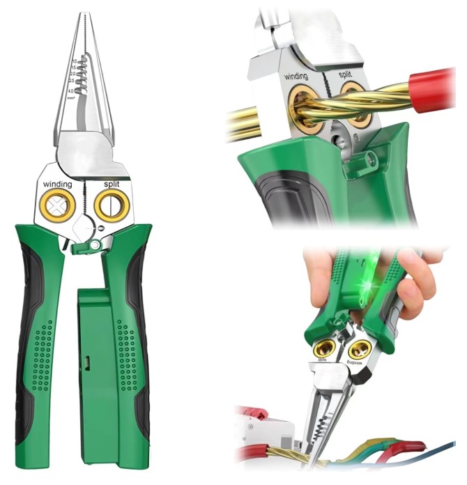 • Multifunctional Wire Stripper And Twister With Electricity Measurement Function For Efficient Wire Cutting, Pulling, Scraping, And Pressing. Perfect Tool For Electricians And DIY Enthusiasts • 8-in-1 Wire Stripping Pliers With Voltage Test Feature, Offering Convenience And Accuracy For Electrical Work. Say Goodbye To Multiple Tools With This All-in-one Solution.suitable For AWG 18,14,12,10,6/1.0,1.5,2.0,2.5,4.0mm²; Cape Cable 25mm² Wire, Open Cable Outer Skin, Divide Wiring 2*1.5mm² • Small And Compact Design For Easy Handling And Storage. Don't Let The Size Fool You, As This Wire Stripper Packs A Punch With Its Versatile Functionality • High-quality Cable Scissors For Precise Cutting And Stripping Of Electrical Cables. No More Struggling With Dull Blades Or Uneven Cuts • Professional-grade Wire Stripper Crimper For Reliable Wire Connections. Save Time And Effort With This Efficient Tool, Perfect For Electrical Projects Of Any Scale
