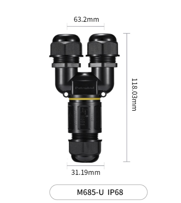 Model: M685-U*2pin*3pin*4pin*5pin(screw type) IP Code: IP68 (Patented) (with 20 metres water column for 150 hours) Color: Black Connection Type: Screw Ampere / Voltage: 32A 450VAC Temperature Range: -40-105°C Wire Section: 0.5 ~ 4.0 mm² Outer Cable Diameter: 4-8mm or 8-12mm or 10-14mm Certificates: ENEC,CE,CB,UKCA,NSW,ETL,ROHS