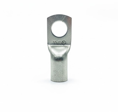 Key Selling Points (For Product Description) • Maximum Performance: Built from high-grade copper to handle substantial current loads with minimal heat build-up. • Corrosion Protection: Tin plating provides a durable barrier against environmental corrosion, ensuring connection longevity. • Perfect Fit: The precise $50\text{mm}^2$ barrel and $\text{M10}$ palm hole guarantee compatibility with standard high-power cables and terminal studs. • Installation Assurance: Features like the inspection hole and flared entry simplify proper installation, which is critical for electrical safety and reliability. The "50-10" cable lug is designed for very high-current applications and is specified as follows: • 50 Square Millimeters: The cable conductor cross-sectional area it is designed to accept. • 10 Millimeters: The stud or bolt hole diameter