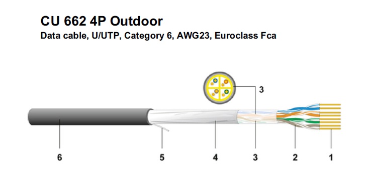 Cat 6 Data Cable U/UTP 4 Pairs, 250MHz,24AWG, PE Outdoor cable Black (500Meter/Roll) Model# 194215 -Datwyler Switzerland