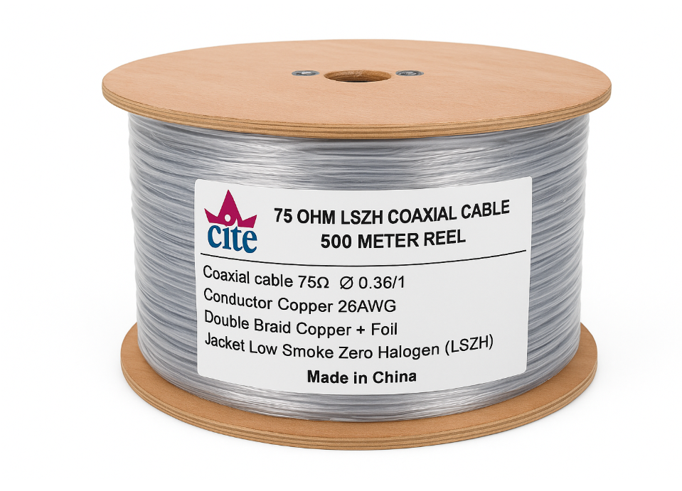 CITE 75 Ohm LSZH Coaxial Cable – 500 Meter Reel (26AWG, Double Braided Copper + Foil)