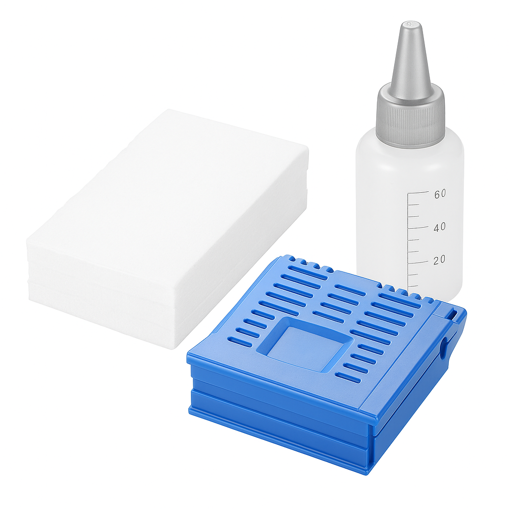 Key Features: ✅ Complete Cleaning Kit – Includes fiber optic wiping clip, alcohol bottle, and 10 lint-free cotton pads for professional fiber cleaning. ✅ Effective Dust & Oil Removal – Safely removes dust, oil, and microscopic particles from fiber connectors and end faces. ✅ Compact & Portable – Lightweight design makes it ideal for both field and laboratory use. ✅ High Efficiency – Ensures stable transmission and reduces signal loss caused by dirty connectors. ✅ Reusable Tool – Wiping clip is durable and can be refilled with cleaning pads. Specifications: Product: Fiber Optic Wiping Clip Material: ABS Plastic (clip) + Lint-Free Pads Pads: 10 pcs included (replaceable) Bottle: Refillable alcohol dispenser (empty) Applications: SC, LC, FC, ST, MPO, and other fiber connectors Applications: Fiber optic connector cleaning FTTH / FTTx projects Data center and telecom maintenance Optical laboratory use Package Includes: 1 × Fiber Optic Wiping Clip 1 × Refillable Alcohol Bottle 10 × Cleaning Cotton Pads
