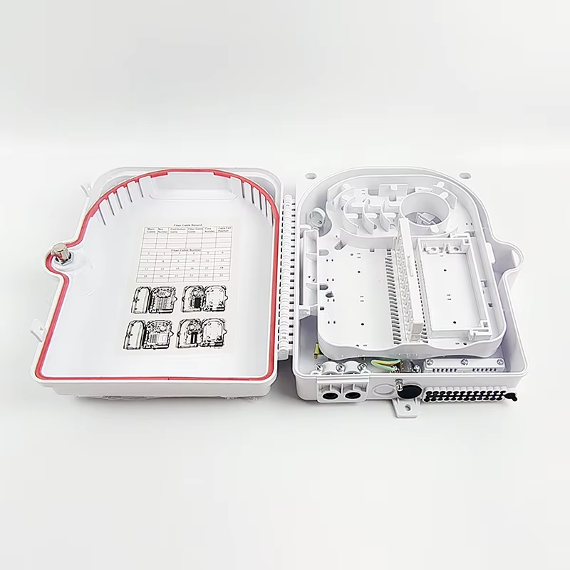The FTTH ODB 24 Core IP65 Fiber Distribution Box features a 1x24 PLC splitter, designed for efficient fiber management and distribution in FTTH (Fiber to the Home) networks. Its IP65 rating ensures robust protection against dust and water, making it suitable for outdoor installations.