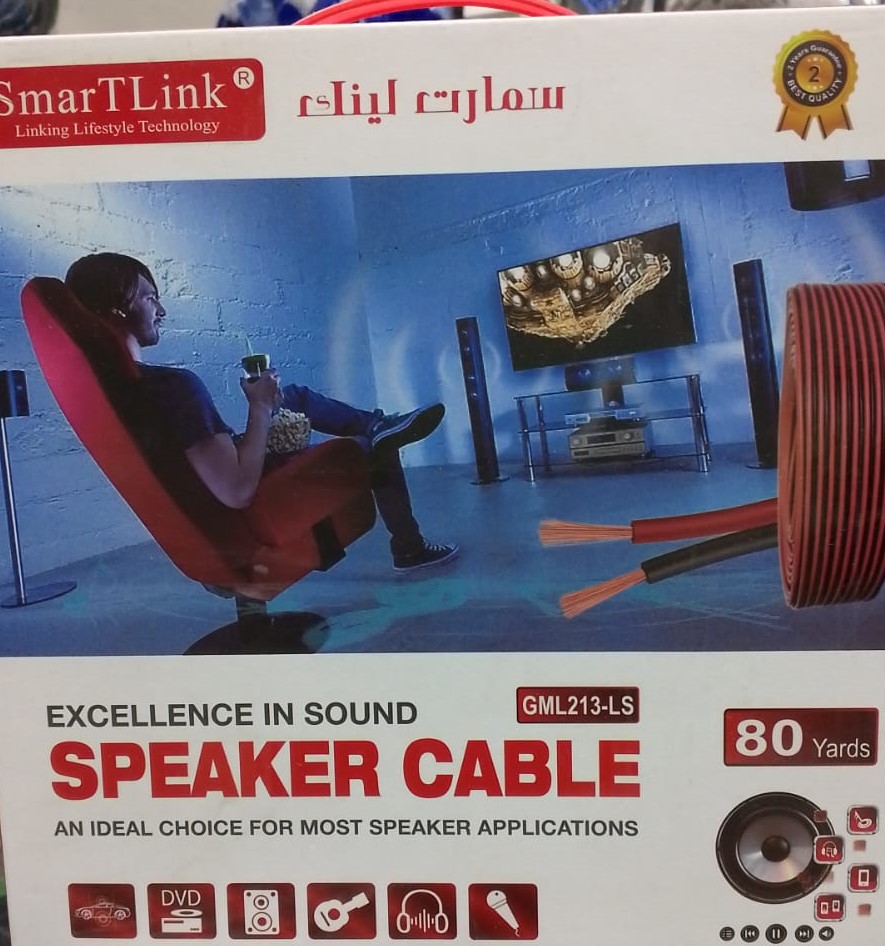 SMART LINK GML 213-LS Speaker Cable – 2×2.0mm², 80 Yards The SMART LINK GML 213-LS Speaker Cable is a premium-grade, low-smoke speaker cable designed for high-performance audio signal transmission in professional AV and commercial installations. With a conductor size of 2×2.0mm² and a total length of 80 yards (approximately 73 meters), this cable offers low resistance, enhanced conductivity, and superior signal clarity over extended distances. Manufactured using high-purity, multi-stranded copper conductors, the GML 213-LS ensures minimal signal loss, making it ideal for connecting high-power speakers, amplifiers, and audio distribution systems. The LS (Low Smoke) PVC outer sheath ensures safety and compliance in low-visibility and enclosed environments, reducing toxic emissions in case of fire. Key Features: Conductor Size: 2×2.0mm² – Ideal for medium-to-high power speaker systems Length: 80 Yards (approx. 73 meters) – Suitable for large-scale audio wiring Conductor Type: Multi-stranded, high-purity copper for superior signal transfer Sheath Type: FR PVC (Flame Retardant) LS – Low Smoke and Halogen-Free Color Coding: Two-core cable with clear polarity identification for easy installation Insulation: High-dielectric strength for minimized crosstalk and signal degradation Jacket Color: White or Transparent (depending on product variant) Compliance: RoHS compliant, low-smoke emission rated Application: Suitable for indoor AV, commercial audio, and PA system wiring