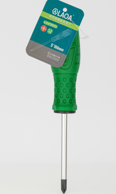 Product Details Specification Description Brand - LAOA. Model - LA618206. Type - Phillips Screwdriver (+) Size - 5× 100 mm. Material - S2 high-strength steel shaft and tip. Handle - Bi-material (green rubberized and textured grip for comfort and anti-slip control) Magnetic Tip - Yes – precision magnetized tip for easy screw holding. Usage - Suitable for electronics, mechanical assembly, appliances, and general maintenance. Features - High torque, wear-resistant, anti-corrosion finish, ergonomic design to reduce fatigue. Color - Green and black handle with chrome-finished shaft.