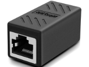 The **RJ45 Coupler In-Line Adapter** connects two Ethernet cables, extending Cat7/Cat6/Cat5e networks with minimal signal loss. Its durable black design ensures reliable performance for home or office use.
