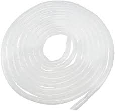 12mm Spiral Cable Wrap in white, 10 meters per roll, provides protective coverage for wires and cables. It helps organize and safeguard cables from abrasion and damage in various applications.