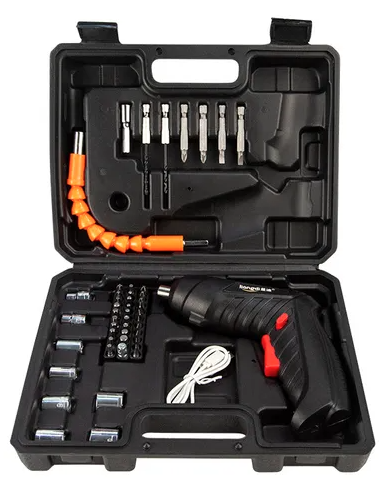 • 47-in-1 Versatile Set – This electric screwdriver set includes 47 different bits, making it perfect for a wide variety of DIY projects and home repairs. • USB Rechargeable Design – The mini screwdriver features a USB rechargeable battery for added convenience and environmental friendliness. • Compact & Portable – The mini cordless screwdriver is small, lightweight, and easy to carry around, making it ideal for on-the-go use. Multi-Purpose Tool – Perfect for household tasks, assembling furniture, electrical work, and general home improvement projects. • Cordless Convenience – Enjoy the freedom of cordless operation without the hassle of tangled wires or restricted movement. Durable & Sturdy Construction – Built to last, this screwdriver set is made from high-quality materials to withstand frequent use. • Ergonomic Handle – The screwdriver has an ergonomically designed handle for a comfortable, secure grip, reducing strain during extended use. Quick & Easy Bit Switching – Easily swap out the 47 included bits for efficient and fast work on a variety of tasks. • High-Performance Motor – The electric motor provides sufficient torque for most home tasks, from driving screws to drilling light holes. Adjustable Speed Control – Allows you to control the speed for different applications, providing precise control during use. • Built-in Safety Features – Includes overcharge and overheating protection, ensuring safe and long-lasting use. Perfect for DIY Projects – Ideal for home improvement, assembling furniture, fixing electronics, and a variety of repair jobs. • Rechargeable Battery – The rechargeable battery ensures you don’t need to constantly replace batteries, saving money and reducing waste. Easy to Use – Simple push-button operation makes this screwdriver accessible for both beginners and experienced DIYers alike.