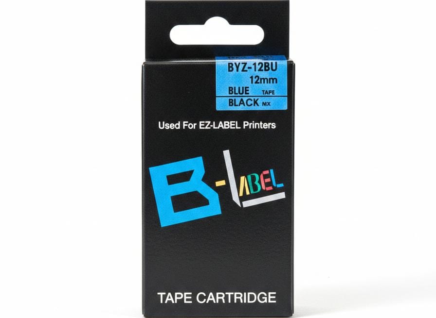 COMPATIBLE 12MM BLACK ON BLUE LABEL TAPE FOR CASIO LABEL PRINTERS XR-12BU