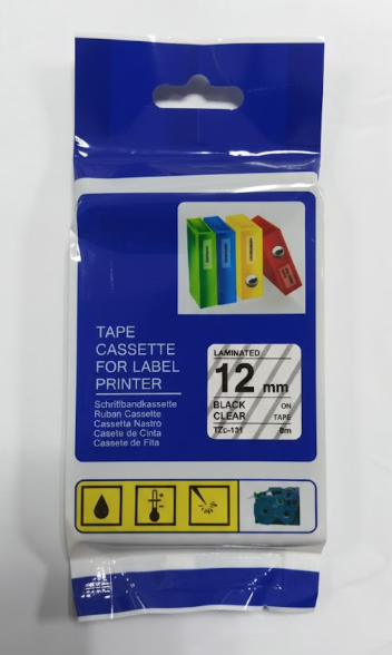 BROTHER COMPATIBLE 12 MM BLACK ON CLEAR LABEL TAPE FOR BROTHER LABEL PRINTERS Tze-131