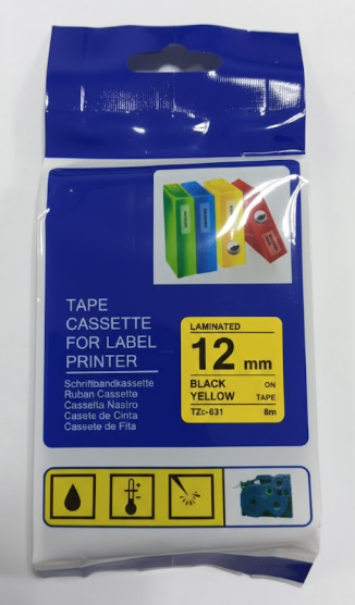 BROTHER COMPATIBLE 12 MM BLACK ON YELLOW LABEL TAPE FOR BROTHER LABEL PRINTERS Tze-631