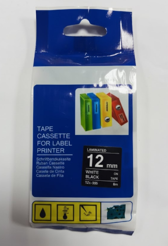 BROTHER COMPATIBLE 12 MM WHITE ON BLACK LABEL TAPE FOR BROTHER LABEL PRINTERS Tze-335