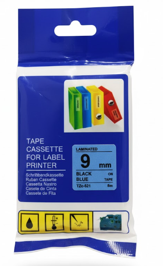 BROTHER COMPATIBLE 9 MM BLACK ON BLUE LABEL TAPE FOR BROTHER LABEL PRINTERS Tze-521
