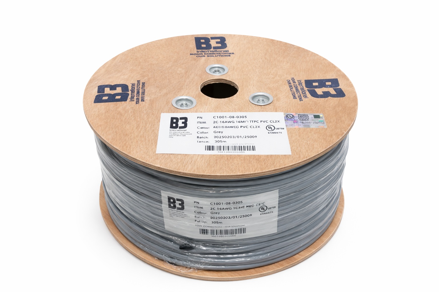 14 AWG, 2-core shielded multi-conductor cable • Overall shielding with screened design for EMI protection — common for audio control, instrumentation, and BMS use. • PVC jacket (grey) and 305 m roll • Designed to the same general specification as a classic B3 C1001 style cable (used as alternative to Belden 5100FE). • The B3 C1001 cable specification is for a shielded audio/ control/ instrumentation cable featuring: • 2 conductors of 14 AWG (flexible copper) • Overall screen/shield to reduce electromagnetic interference • PVC insulation and jacket