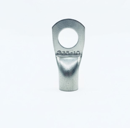 The "35-10" cable lug is designed for even higher current carrying capacity and signifies: • 35 Square Millimeters: The cable conductor cross-sectional area • 10 Millimeters: The stud or bolt hole diameter Key Selling Points • Robust Connection: Designed for high-amperage applications, providing a secure, low-resistance termination for $35\text{mm}^2$ cable. • Maximum Safety: Manufactured from high-grade copper and tinned to prevent corrosion, ensuring long-term connection integrity and safety. • Versatile Use: Ideal for heavy-duty applications in automotive, marine, solar power, industrial machinery, and electrical distribution panels. • Industry Compliance: Meets the dimensions and material requirements of major international standards, guaranteeing reliability and quality.