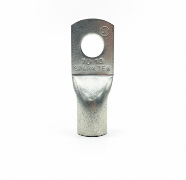 Key Selling Points • Extreme Reliability: Engineered for high-stress, high-current environments, ensuring a permanent and secure electrical joint. • Optimized Conductivity: Made from annealed, high-purity copper to guarantee excellent conductivity and mechanical strength, preventing cracking during compression. • Universal Compatibility: Conforms to major international standards (DIN/IEC), making it compatible with standard $70\text{mm}^2$ cables and $\text{M10}$ studs globally. • Corrosion Proof: Fully tin-plated surface protection allows for use in harsh, humid, or outdoor conditions without risk of connection degradation. The "70-10" cable lug is a high-capacity terminal for heavy industrial and power distribution applications, with the following core specifications: • 70 Square Millimeters: The cable conductor cross-sectional area it is designed to accept. • 10 Millimeters: The stud or bolt hole diameter