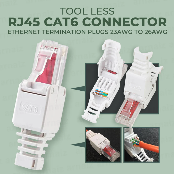 Key Features Tool-less design – No crimping tool required Supports Cat6 standards – 250 MHz performance Compatible with: Solid & stranded UTP 23–26 AWG Housing: Durable polycarbonate with metal shielding (depending on model) Contacts: Gold-plated pins for stable signal transmission Suitable for: Patch cords, field termination, CCTV, routers, network switches, keystone replacements Installation Steps (Easy Guide) 1. Prepare the Cable Cut the cable cleanly. Strip approx. 25–30 mm of the outer jacket. Keep the pairs intact until routing. 2. Untwist & Arrange the Pairs Separate the four twisted pairs. Arrange wires per required wiring standard: T568B (most common): White/Orange Orange White/Green Blue White/Blue Green White/Brown Brown 3. Insert Wires into the Cap Place each conductor into the color-coded slots on the plug’s wiring cap. Ensure all conductors reach fully and sit properly. 4. Trim Excess Wires Cut off any wire extending beyond the slots for a clean seating. 5. Close the Tool-less Plug Place the loaded cap into the main plug housing. Press down firmly until the latch locks. The metal contacts will automatically pierce and connect to each conductor. 6. Verify the Connection Tug gently to ensure the cable is secured. Test using a network cable tester for continuity & pairing. Advantages Fast field termination No crimp tool required High-quality, stable signal Re-usable in some models Ideal for installations in tight spaces or on-site repairs Typical Applications Network patch cables LAN installations CCTV IP camera connections Office, home network wiring Data centers & server rooms
