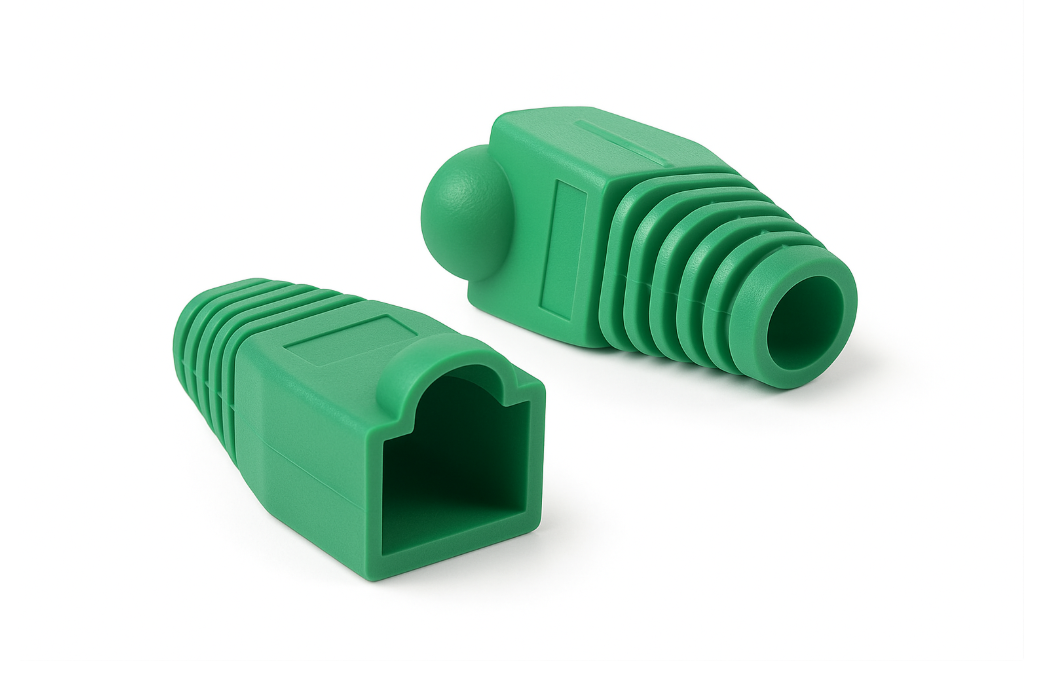 COMMUNETS CAT 6 RJ45 PVC Connector Boot – Green (RJ45 Strain-Relief Boot for Ethernet Cables) ________________________________________ Key Features • Compatible with Cat6 (also works with Cat5e / Cat6A) Ethernet cables (8P8C / RJ45). • Made of pliable and durable PVC — provides strain relief and protects the RJ45 connector latch from damage. • Helps prevent cable stress, bending, and potential damage at termination points — extends the lifetime of your network cables. • Covers the plug’s latch tab to prevent accidental snags or breakage when unplugging (especially useful in dense cable bundles or frequent use environments). • Useful for organizing and visually identifying network cable runs.