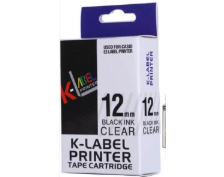 COMPATIBLE 12MM BLACK ON CLEAR LABEL TAPE FOR CASIO LABEL PRINTERS