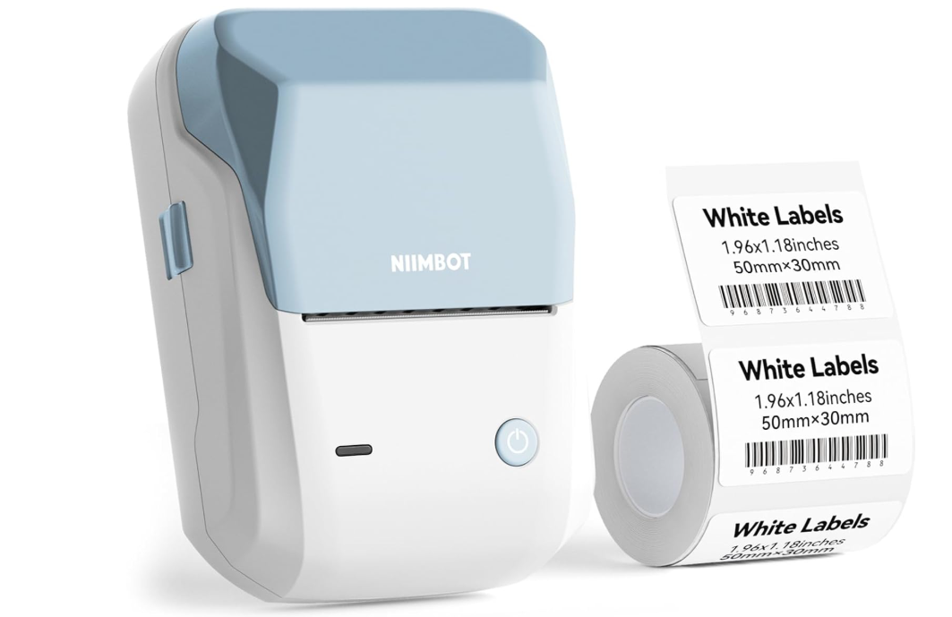 NIIMBOT B1 Label Maker Machine with Tape, 2 Inch Portable Sticker Printer for Home School & Small Business, Compatible with Phones & PC, Blue White