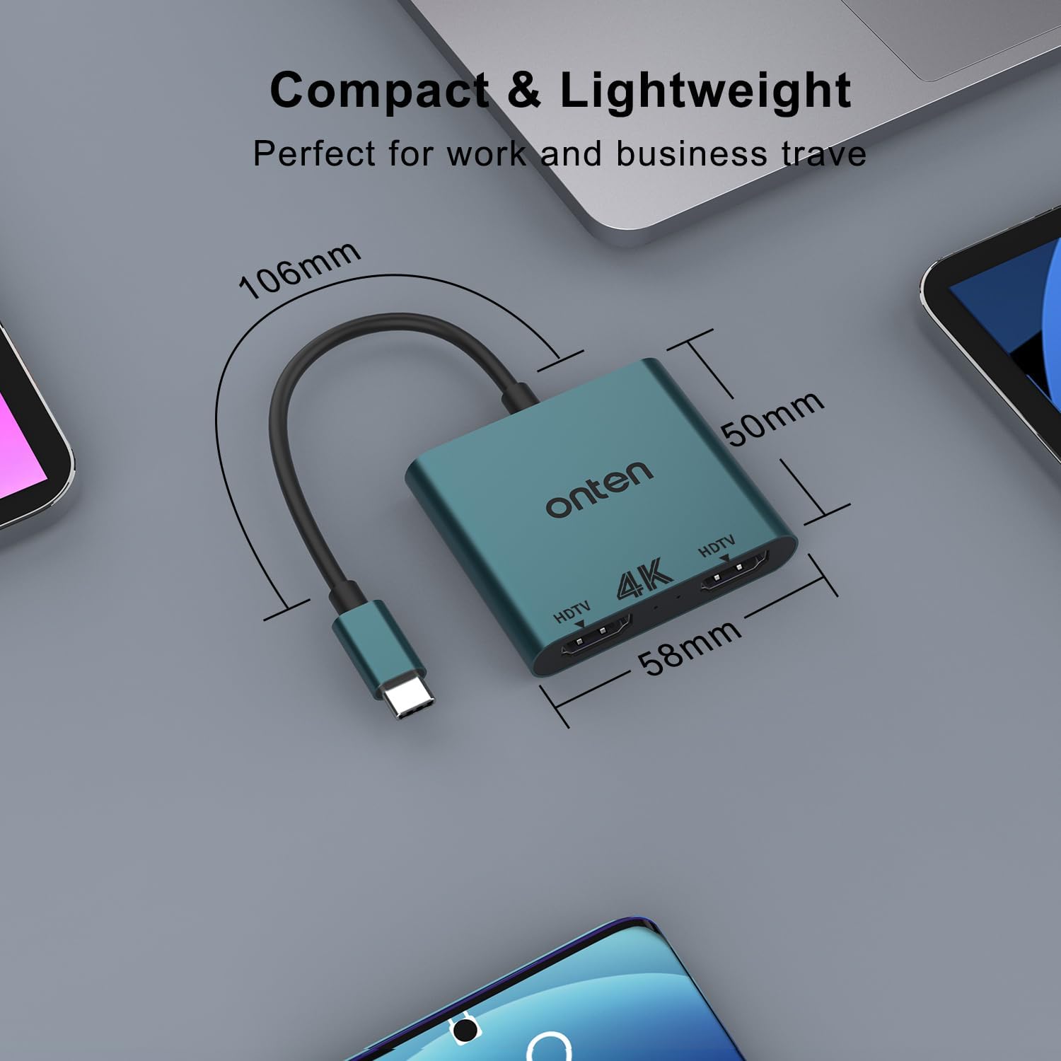 【USB C to Dual HDMI adapter】This dual hdmi adapter can mirror or expand high-resolution graphics images to dual 4K resolution of HDTV, monitors or projectors.The laptop screen can be extended to two monitors.Boost your work productivity and efficiency. Allows you to do different project on differnet monitors. It is an ideal usb c accessories for photography,programmer, data analysis, etc ·【Wide Compatibility】:Compatible with Mac OS, Windows, Linux, Android system with USB-C port which supports "DisplayPort Alternate Mode" (not all USB-C ports/systems support Alternate Mode functionality). Compatible with MacBook Pro 2016-2020, MacBook Air 2018-2020, iPad Pro 2018 2020, M1, M2. ★Note: Mac OS Support Display SST (A-A-A or A-B-B) . Windows OS Support Display MST (A-B-C / A-B-B /A-A-A) ·【4K Vivid 3D Effect Video Sync】:This USB C to dual HDMI adapter, allows your computer to extend dual HDMI screens at the same time. When only one HDMI port is used, the resolution can be up to 4K@60HZ(3840*2160@60Hz), and when two HDMI ports are used simultaneously, the resolution can be up to 4K@30HZ(3840*2160@30Hz) .(Important: ONLY when your devices support 4K resolution, the video output will be 4K,please make sure to use a HDMI 2.0 cable or better.) ·【Plug and Play】: USB C HDMI Adapter offers an easy setup by natively working on device that supports DP Alt Mode over USB Type-C, plug and play, No need any driver.no external power cords are necessary. Please you may need to change the settings of "the default audio output device" on system preference to deliver sound before you use. ·【What You Will Get】Package included: 1* USB-C Hdmi Adapter, 1* User Manual,12-month warranty and lifetime technical support. Feel free to contact us for any issue.Our professional customer service team will always be here and ready to solve problems for you within 24 hours.