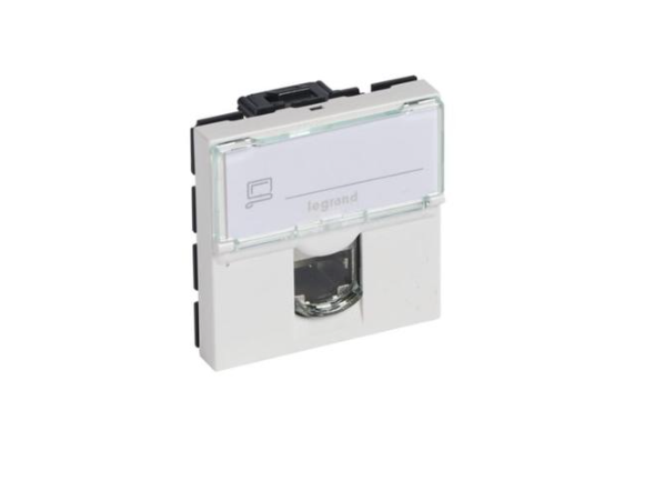Legrand Mosaic™ RJ45 Data Socket - Category 6 UTP - White (Ref. 076564) Product Overview This is a high-quality Category 6 UTP (Unshielded Twisted Pair) RJ45 data socket from the versatile Legrand Mosaic™ modular range. It provides reliable Gigabit Ethernet connectivity for standard network installations in low-EMI environments. Features and Benefits for the User • Gigabit Speed: Delivers high-speed data transmission up to 1 Gbit/s, suitable for most modern home and office network demands. • Modular Mosaic System: The 2-module format seamlessly integrates into all Mosaic support frames, plates, and accessories for a clean, professional finish. • Fast, Toolless Wiring: Features the innovative LCS² connector for quick, reliable, and tool-free wire termination, significantly reducing installation time. • Universal Plug Compatibility: Accepts standard RJ11, RJ12, and RJ45 plugs. • Integrated Dust Protection: Comes equipped with a transparent protective dust cover to shield the connector contacts when not in use. • Durable and Safe: Halogen-free construction; tested and certified to comply with international standards (ISO/IEC 11801, EN 50173-1, TIA/EIA 568 C).