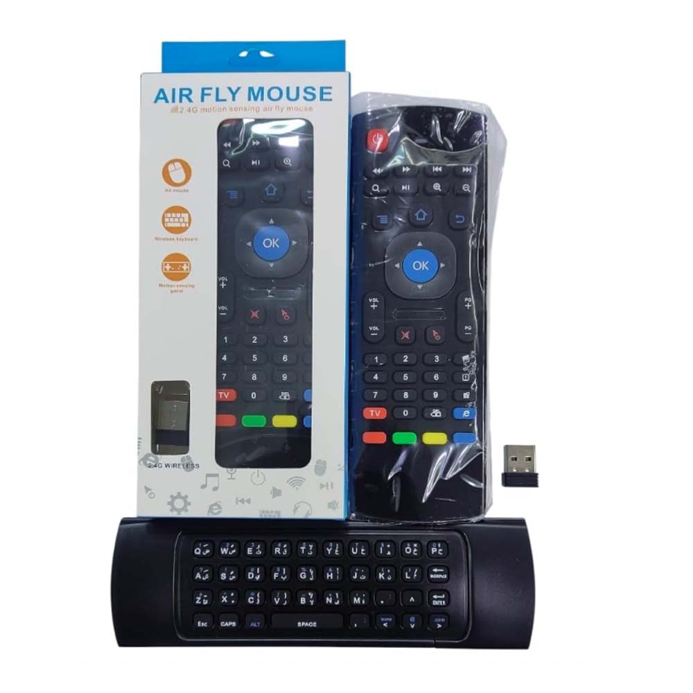 Universal 2.4G Motion Sensing Air Fly Mouse Remote with Keyboard Compatible For Smart LCD LED TVs Monitor & Computer Systems - Black