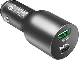 The USB Car Charger + C Type - 84W features dual ports (USB-A and USB-C) for efficient and fast charging of multiple devices. With an 84W output, it is perfect for powering smartphones, tablets, and other compatible gadgets on the go.